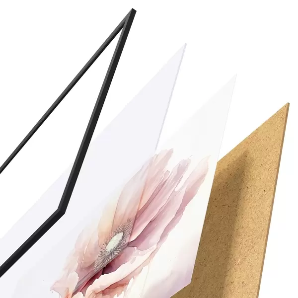 El póster consta de marco, plexiglás, imagen impresa y soporte de aglomerado. El póster puede colgarse inmediatamente en la pared gracias a los soportes de la parte posterior.