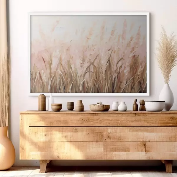 Poster Campo de hierba de la Pampa con tonos rosas y marrones, pinceladas suaves, pintura al óleo abstracta imitación arte f43403