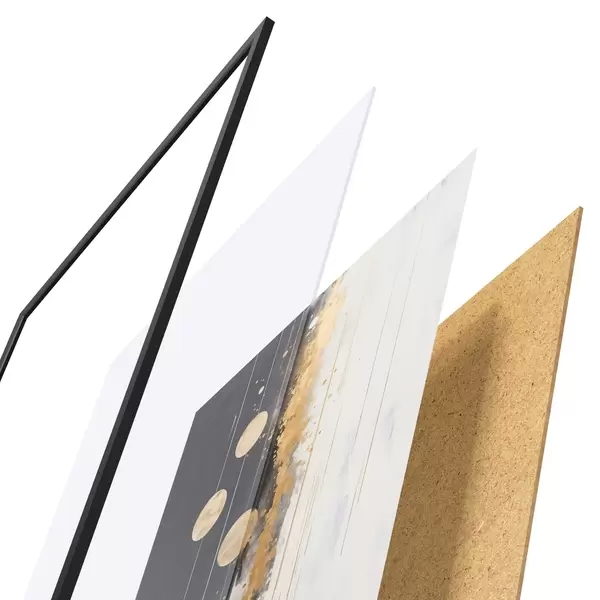 El póster consta de marco, plexiglás, imagen impresa y soporte de aglomerado. El póster puede colgarse inmediatamente en la pared gracias a los soportes de la parte posterior.