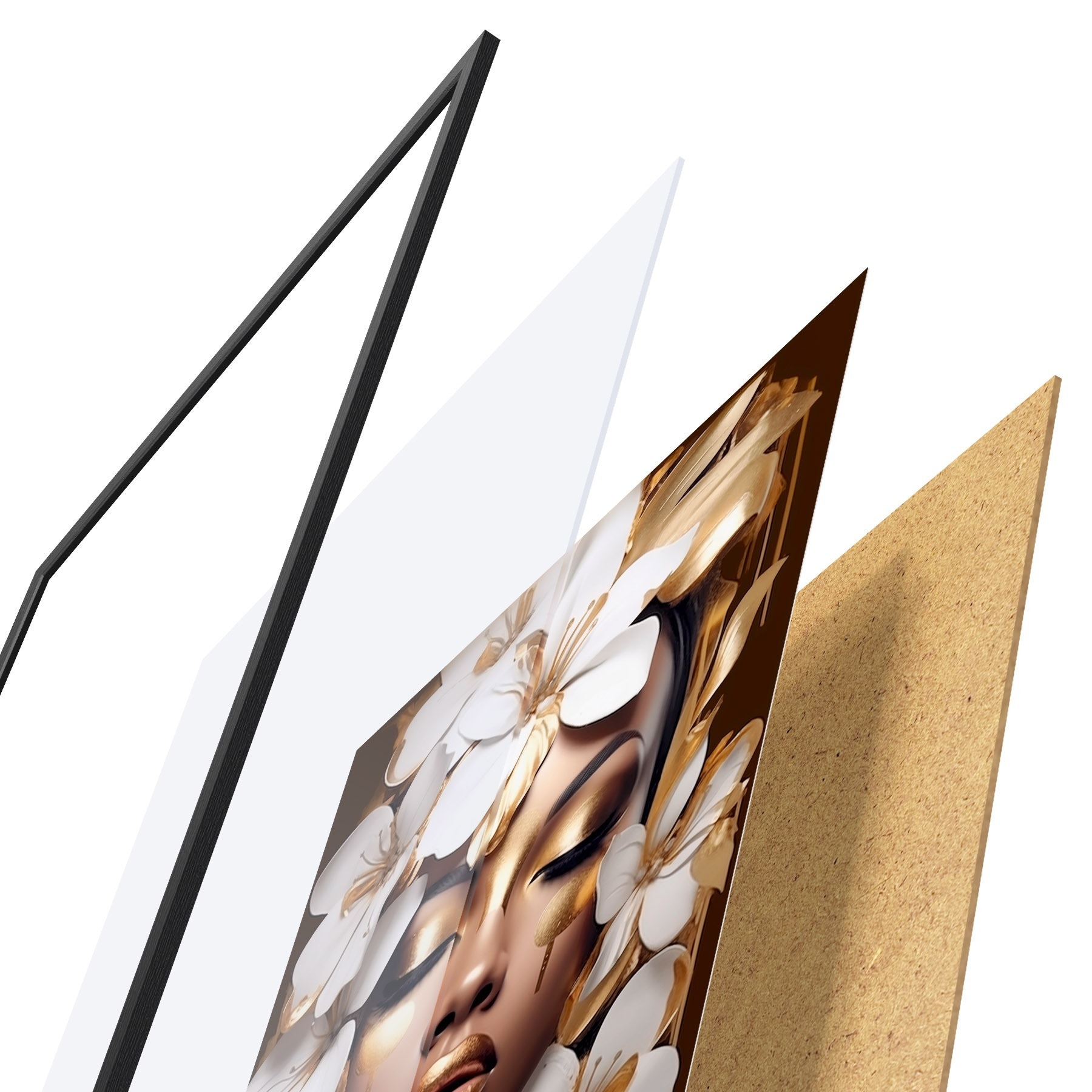 El póster consta de marco, plexiglás, imagen impresa y soporte de aglomerado. El póster puede colgarse inmediatamente en la pared gracias a los soportes de la parte posterior.