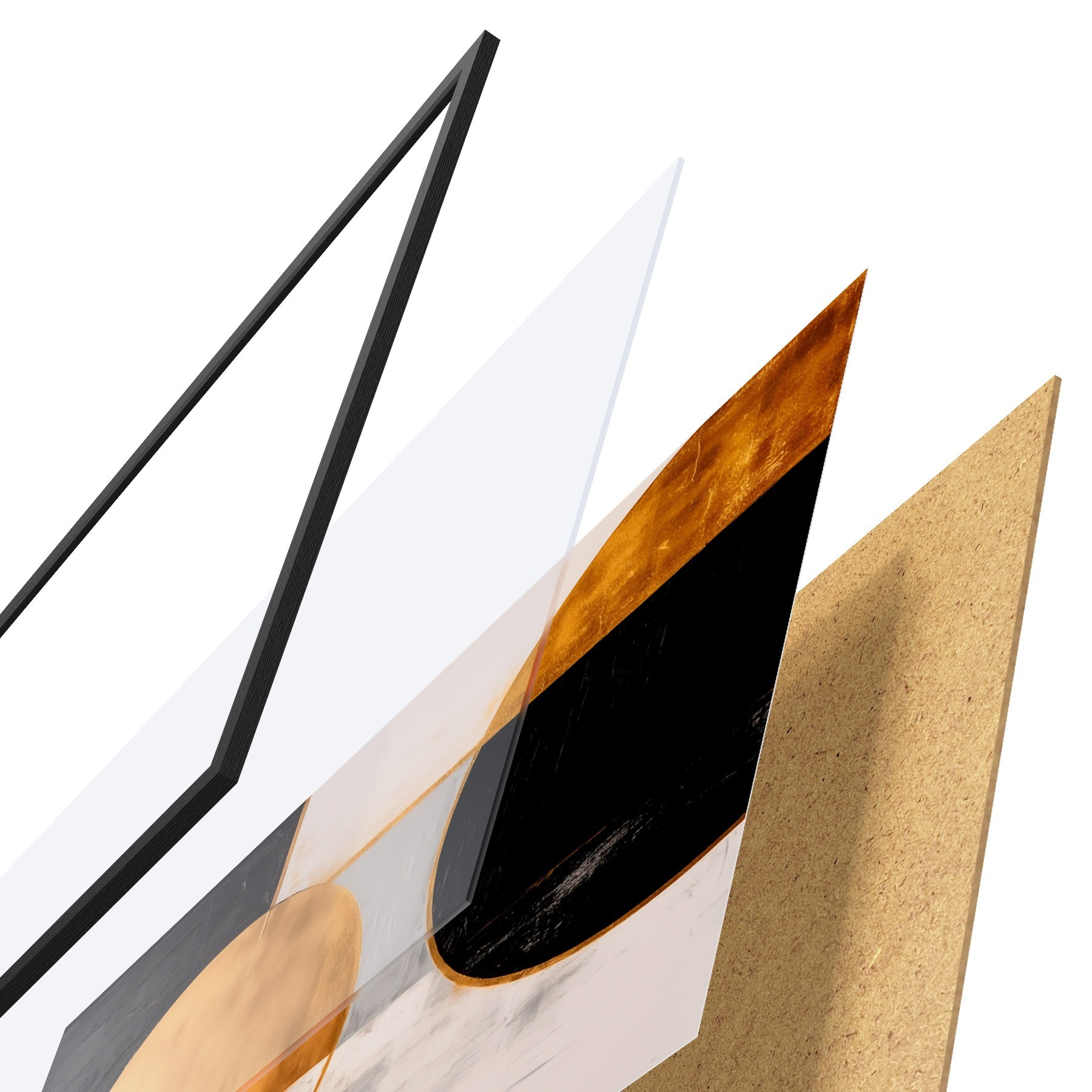 El póster consta de marco, plexiglás, imagen impresa y soporte de aglomerado. El póster puede colgarse inmediatamente en la pared gracias a los soportes de la parte posterior.