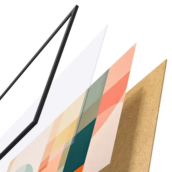 El póster consta de marco, plexiglás, imagen impresa y soporte de aglomerado. El póster puede colgarse inmediatamente en la pared gracias a los soportes de la parte posterior.