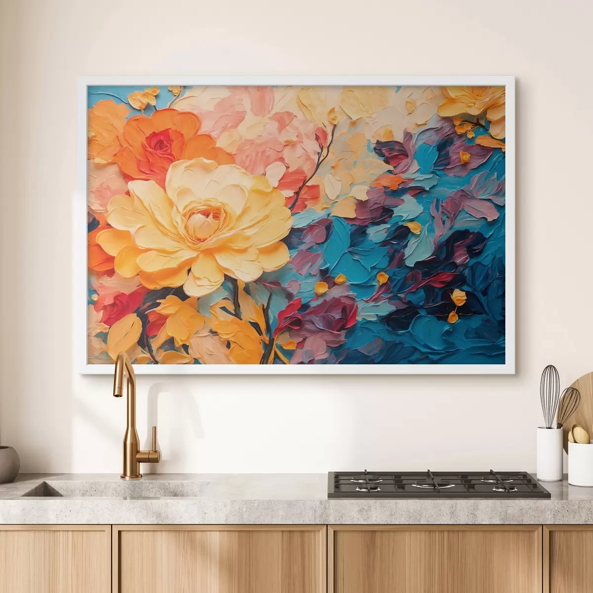 Poster Flores sobre fondo abstracto al óleo Nr f43442