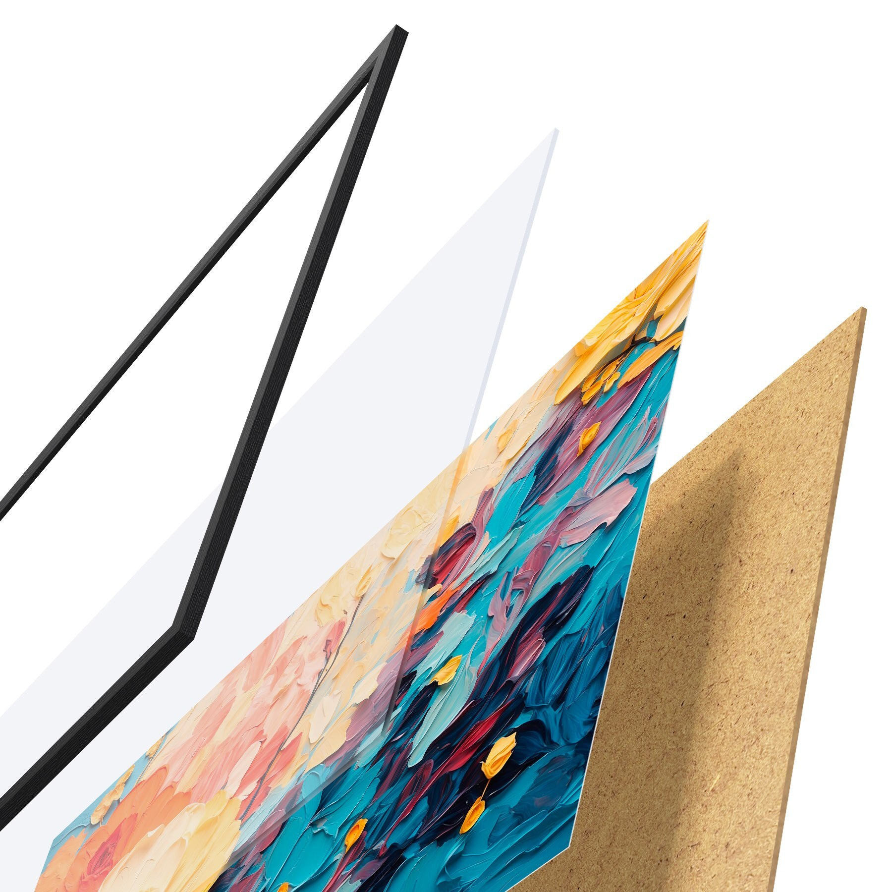 El póster consta de marco, plexiglás, imagen impresa y soporte de aglomerado. El póster puede colgarse inmediatamente en la pared gracias a los soportes de la parte posterior.