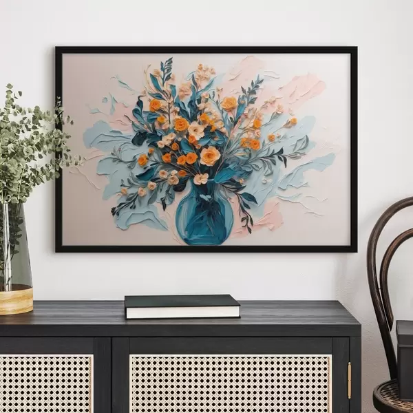 Poster Flores en jarrón transparente al óleo f43443