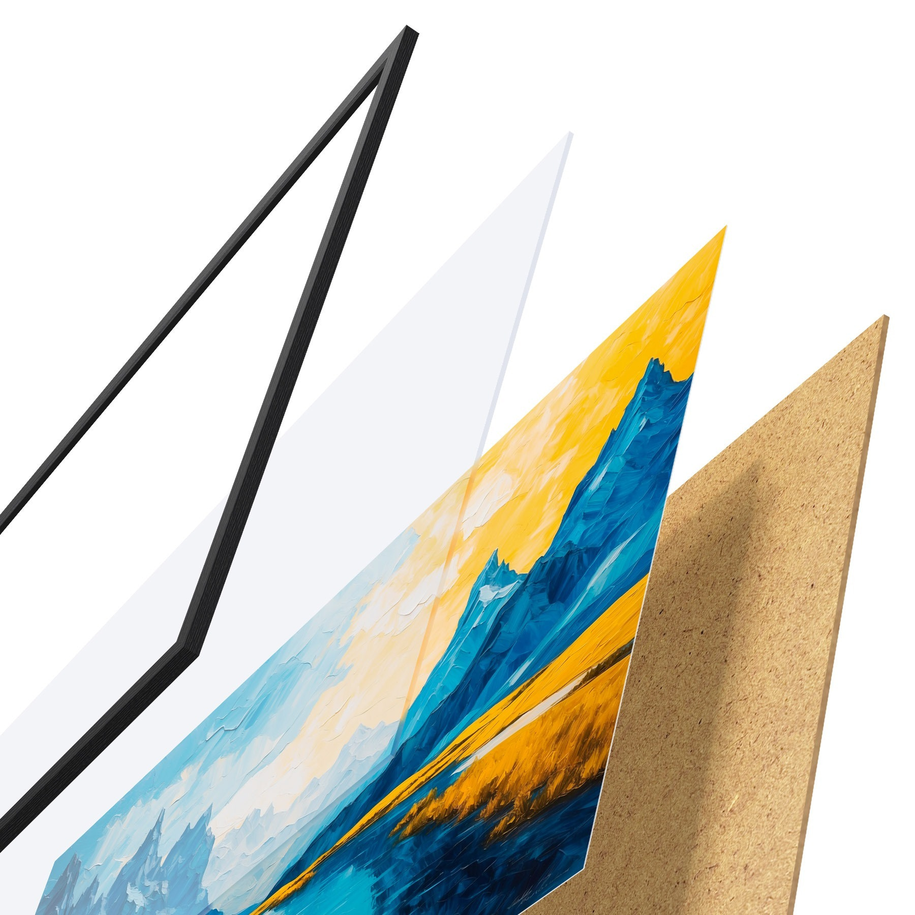 El póster consta de marco, plexiglás, imagen impresa y soporte de aglomerado. El póster puede colgarse inmediatamente en la pared gracias a los soportes de la parte posterior.