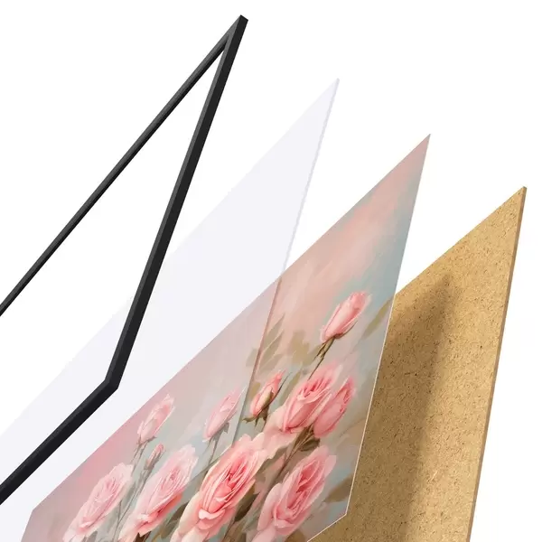 El póster consta de marco, plexiglás, imagen impresa y soporte de aglomerado. El póster puede colgarse inmediatamente en la pared gracias a los soportes de la parte posterior.