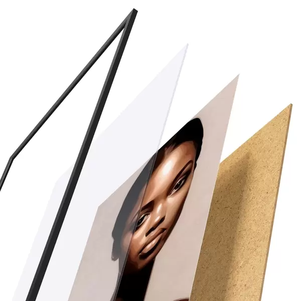 El póster consta de marco, plexiglás, imagen impresa y soporte de aglomerado. El póster puede colgarse inmediatamente en la pared gracias a los soportes de la parte posterior.