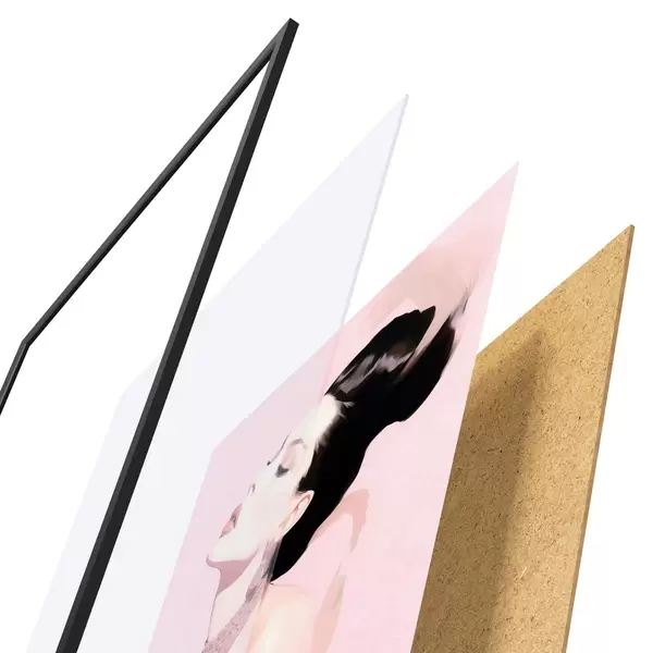 El póster consta de marco, plexiglás, imagen impresa y soporte de aglomerado. El póster puede colgarse inmediatamente en la pared gracias a los soportes de la parte posterior.