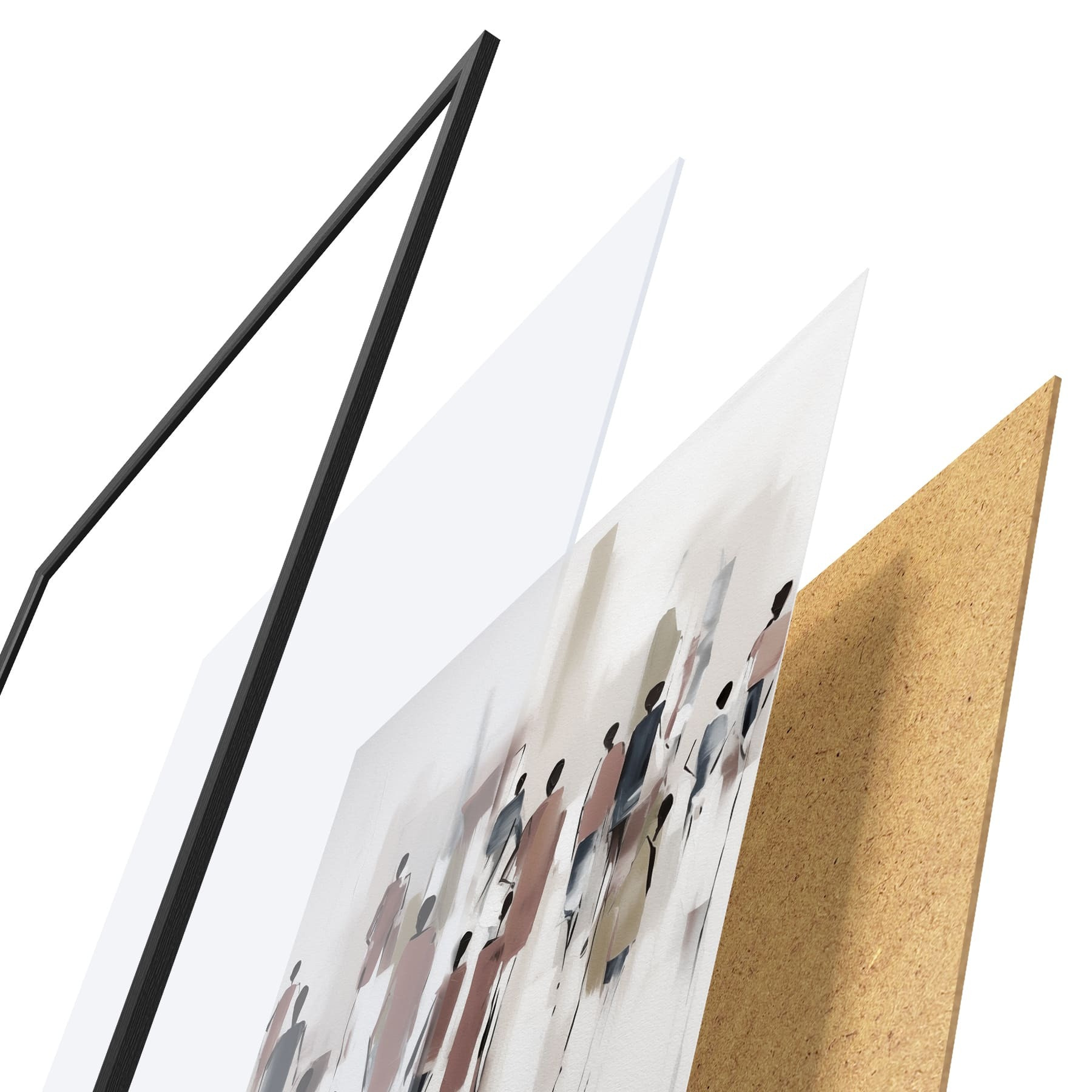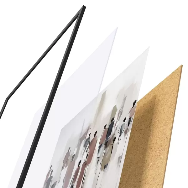 El póster consta de marco, plexiglás, imagen impresa y soporte de aglomerado. El póster puede colgarse inmediatamente en la pared gracias a los soportes de la parte posterior.