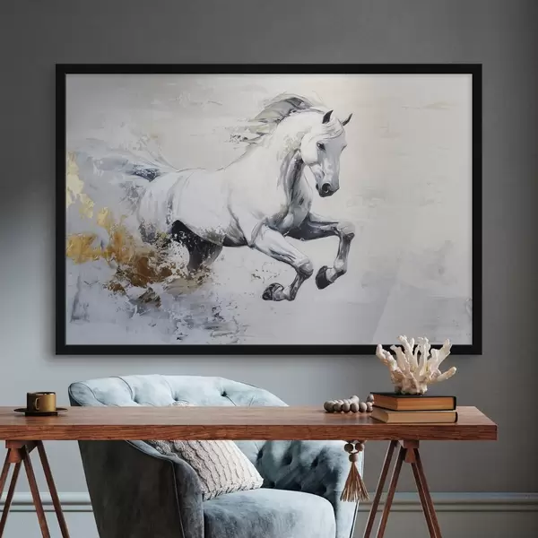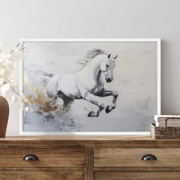 Poster Caballo blanco corriendo, dibujo al óleo, animales Nr f43498