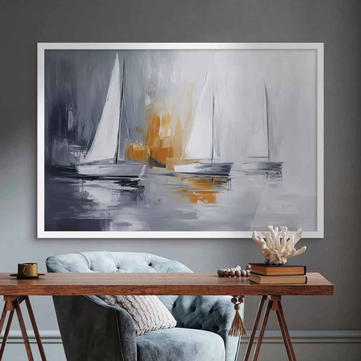 Poster Veleros, abstracción, dibujo estilo acrílico, gris y naranja Nr f43499
