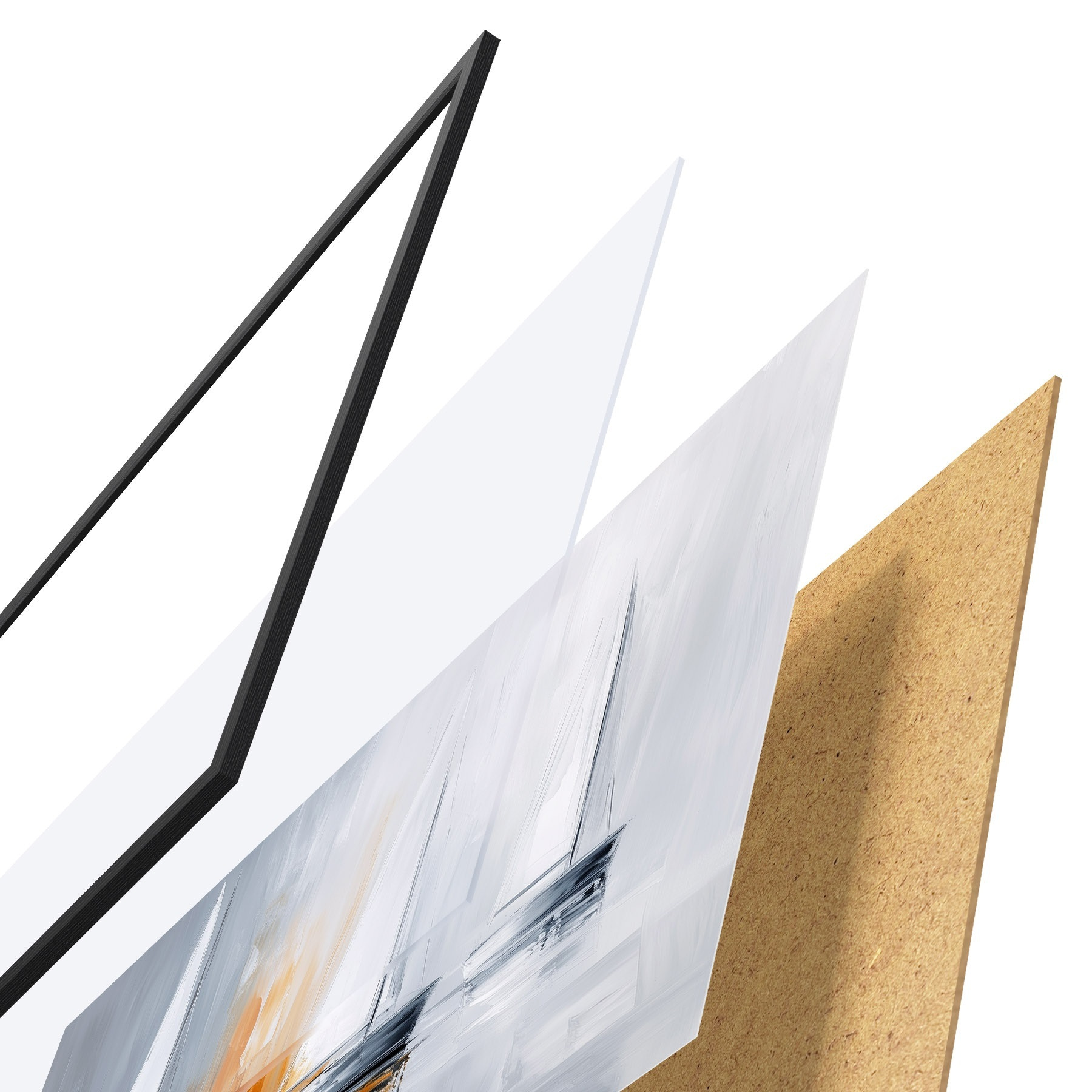 El póster consta de marco, plexiglás, imagen impresa y soporte de aglomerado. El póster puede colgarse inmediatamente en la pared gracias a los soportes de la parte posterior.