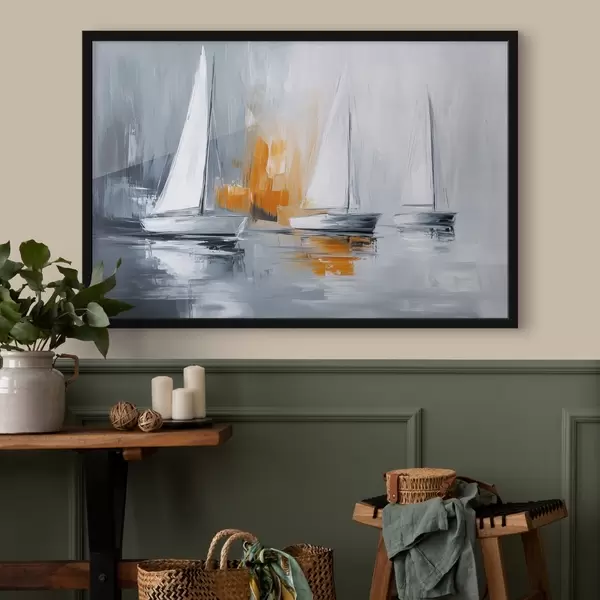Poster Veleros, abstracción, dibujo estilo acrílico, gris y naranja Nr f43499