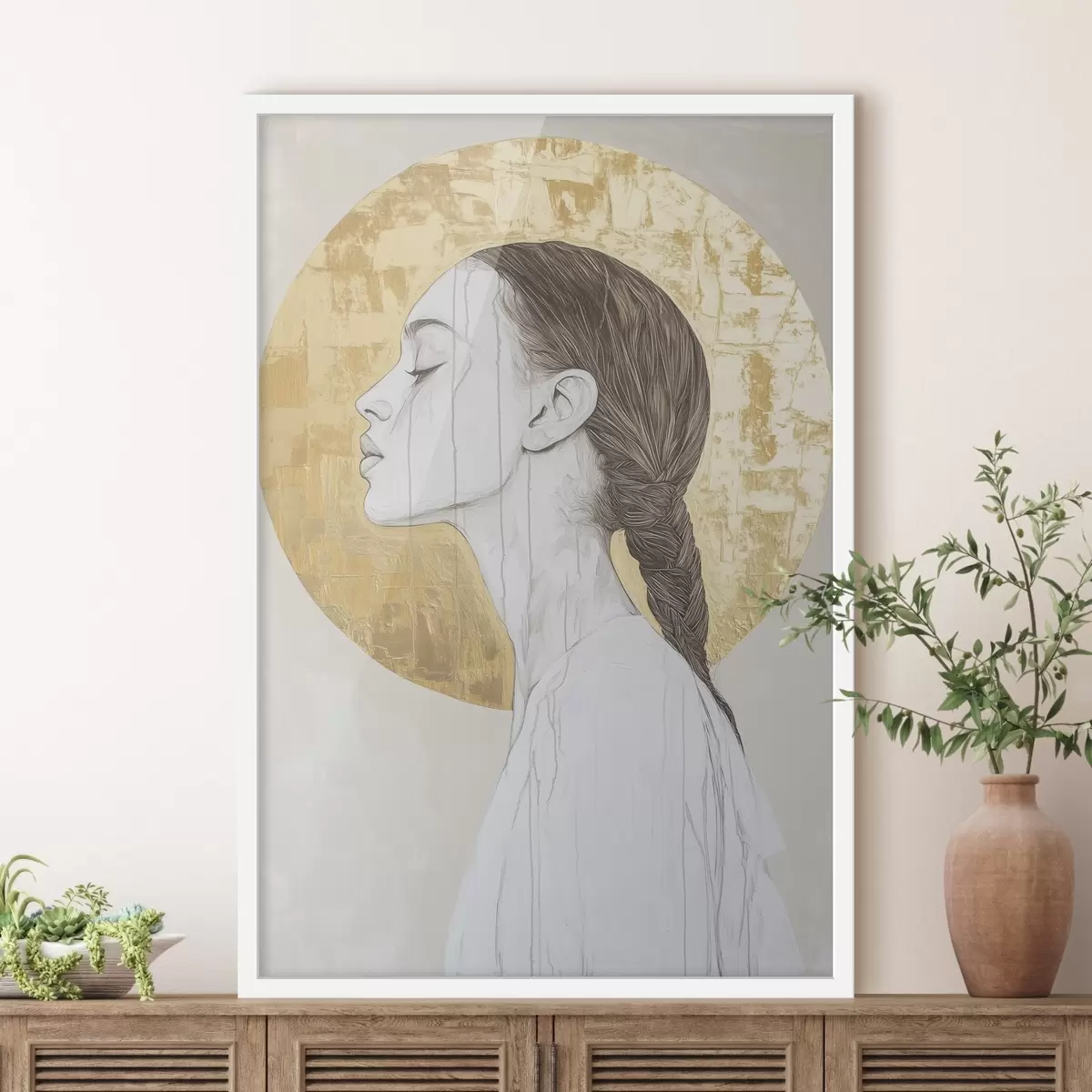 Poster Retrato de mujer, minimalismo, estilo acrílico, colores beige f43504