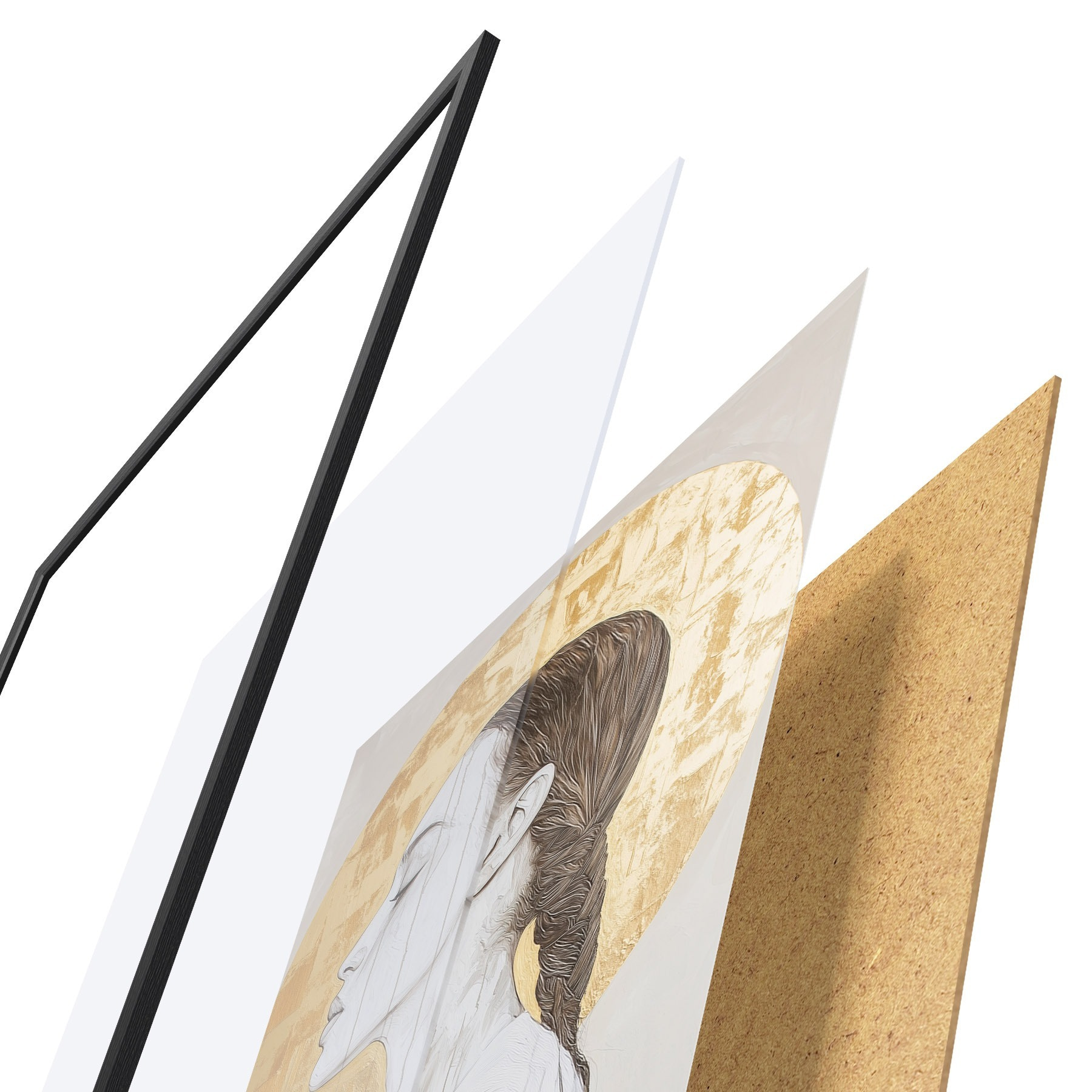 El póster consta de marco, plexiglás, imagen impresa y soporte de aglomerado. El póster puede colgarse inmediatamente en la pared gracias a los soportes de la parte posterior.