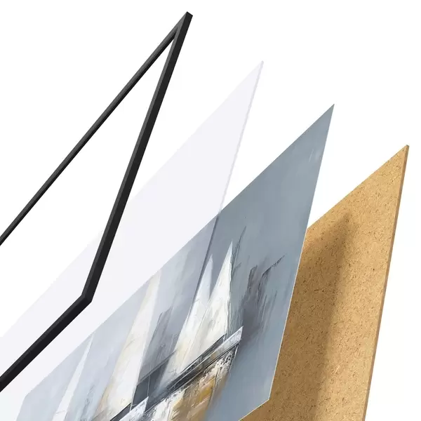 El póster consta de marco, plexiglás, imagen impresa y soporte de aglomerado. El póster puede colgarse inmediatamente en la pared gracias a los soportes de la parte posterior.