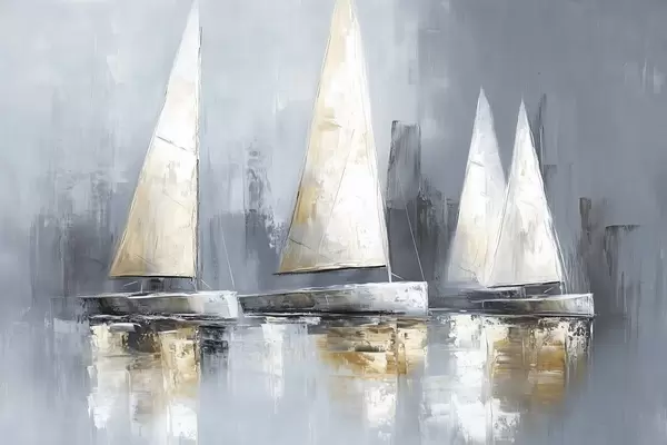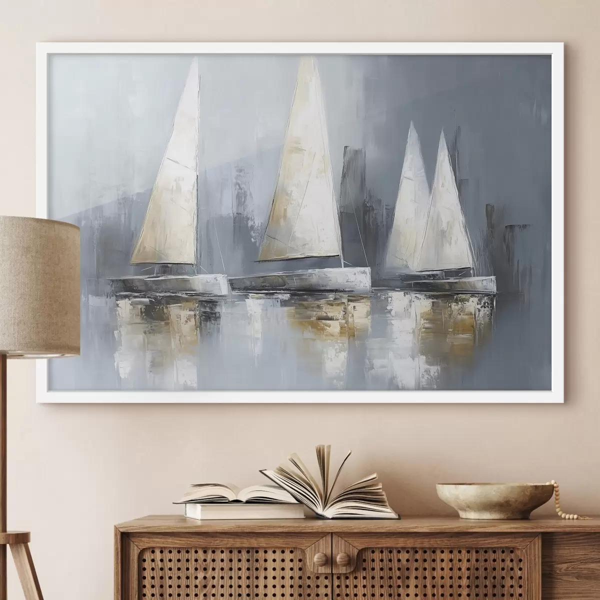 Poster Veleros con reflejos en el agua, dibujo al óleo, colores grises Nr f43506