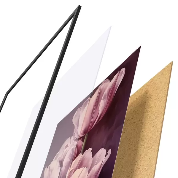 El póster consta de marco, plexiglás, imagen impresa y soporte de aglomerado. El póster puede colgarse inmediatamente en la pared gracias a los soportes de la parte posterior.