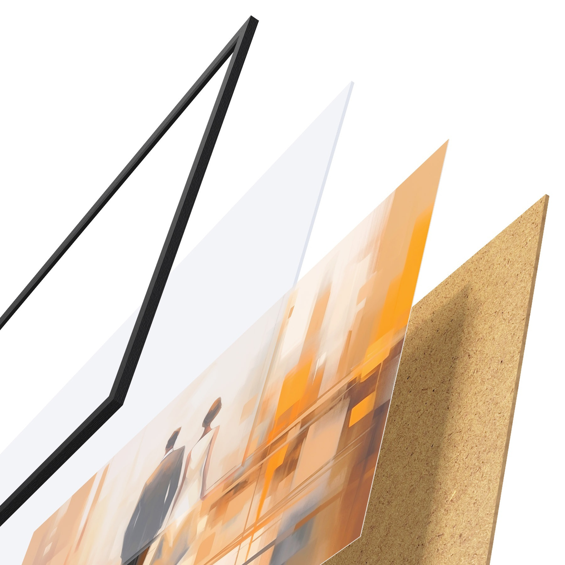 El póster consta de marco, plexiglás, imagen impresa y soporte de aglomerado. El póster puede colgarse inmediatamente en la pared gracias a los soportes de la parte posterior.