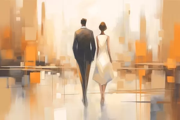 Poster Abstracción con siluetas de ciudades y dos figuras Nr f43516