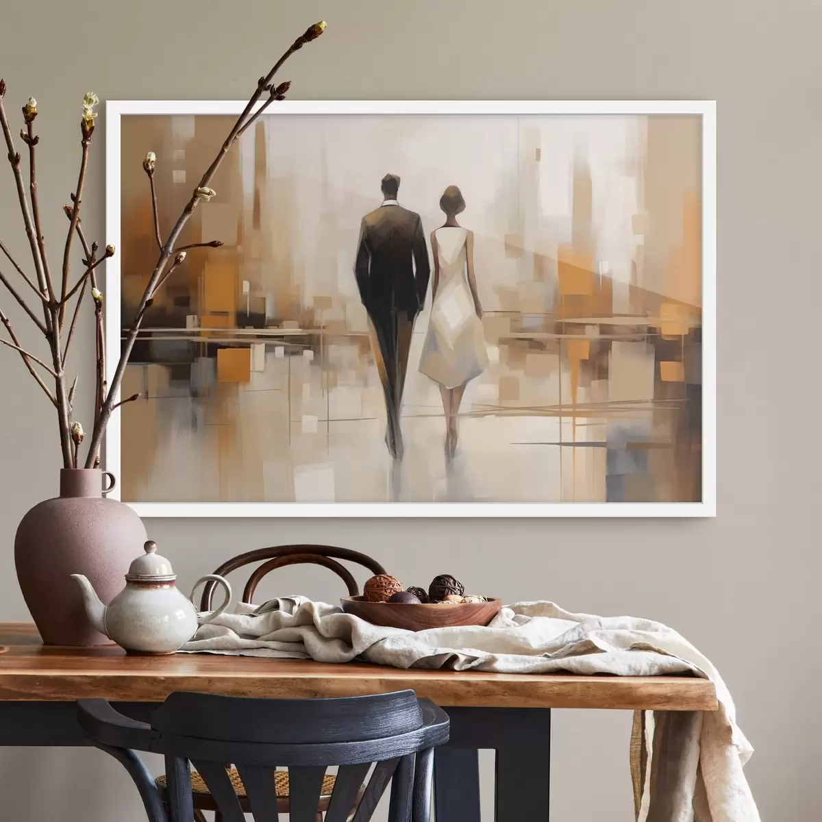Poster Abstracción con siluetas de ciudades y dos figuras f43516