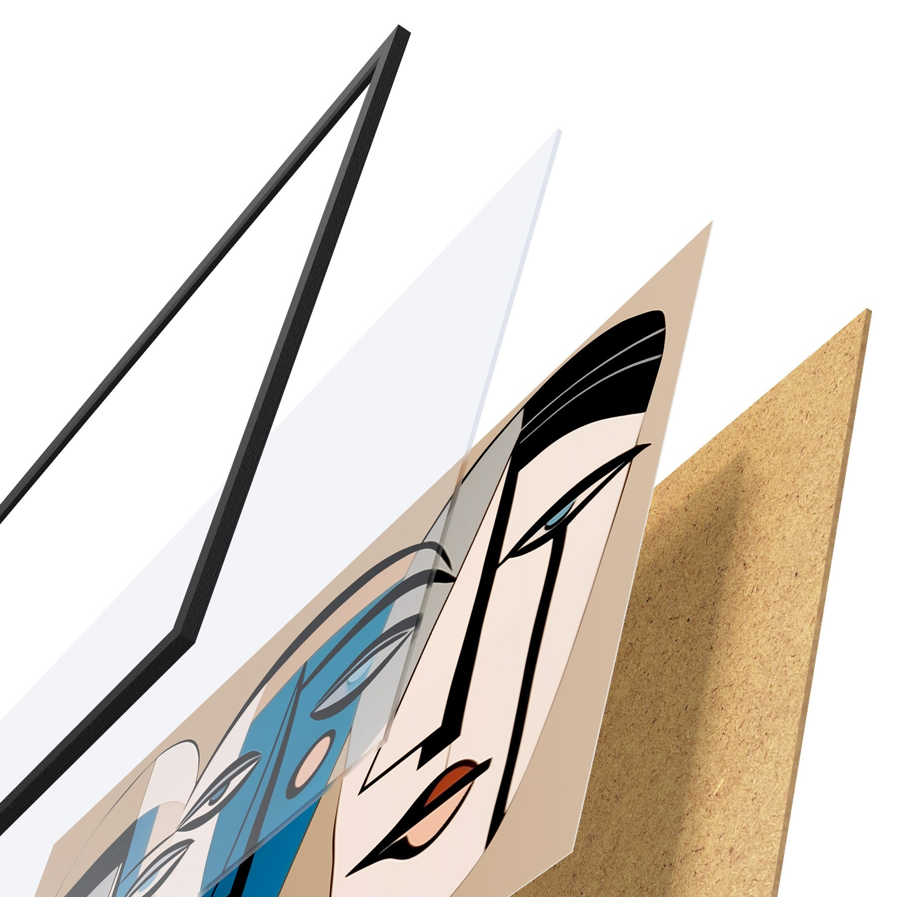 El póster consta de marco, plexiglás, imagen impresa y soporte de aglomerado. El póster puede colgarse inmediatamente en la pared gracias a los soportes de la parte posterior.