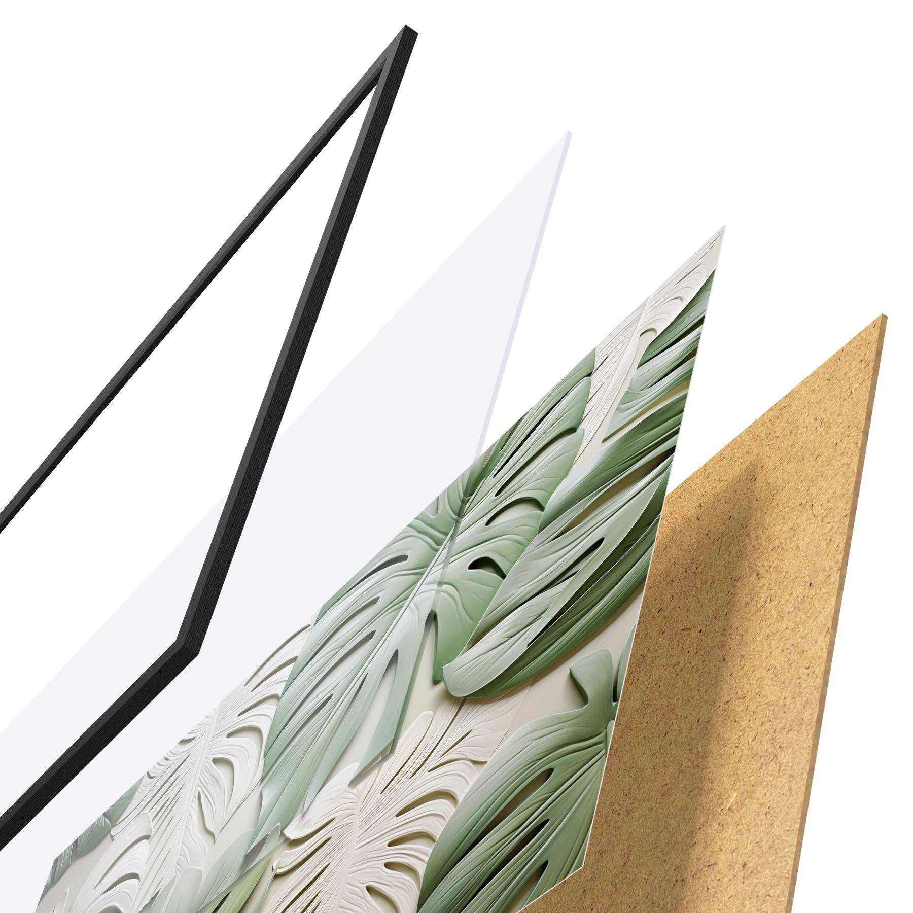 El póster consta de marco, plexiglás, imagen impresa y soporte de aglomerado. El póster puede colgarse inmediatamente en la pared gracias a los soportes de la parte posterior.