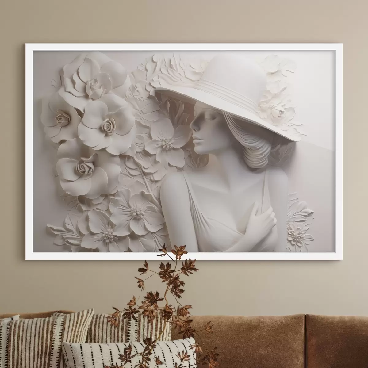 Poster Bajorrelieve imitado de una mujer con sombrero f43547