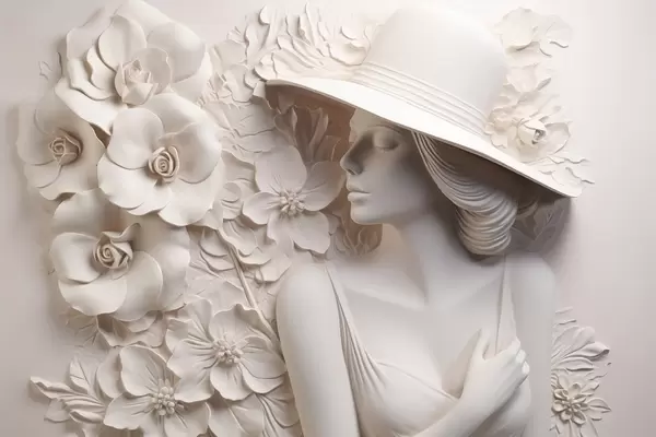 Poster Bajorrelieve imitado de una mujer con sombrero f43547