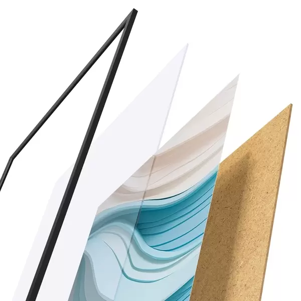 El póster consta de marco, plexiglás, imagen impresa y soporte de aglomerado. El póster puede colgarse inmediatamente en la pared gracias a los soportes de la parte posterior.