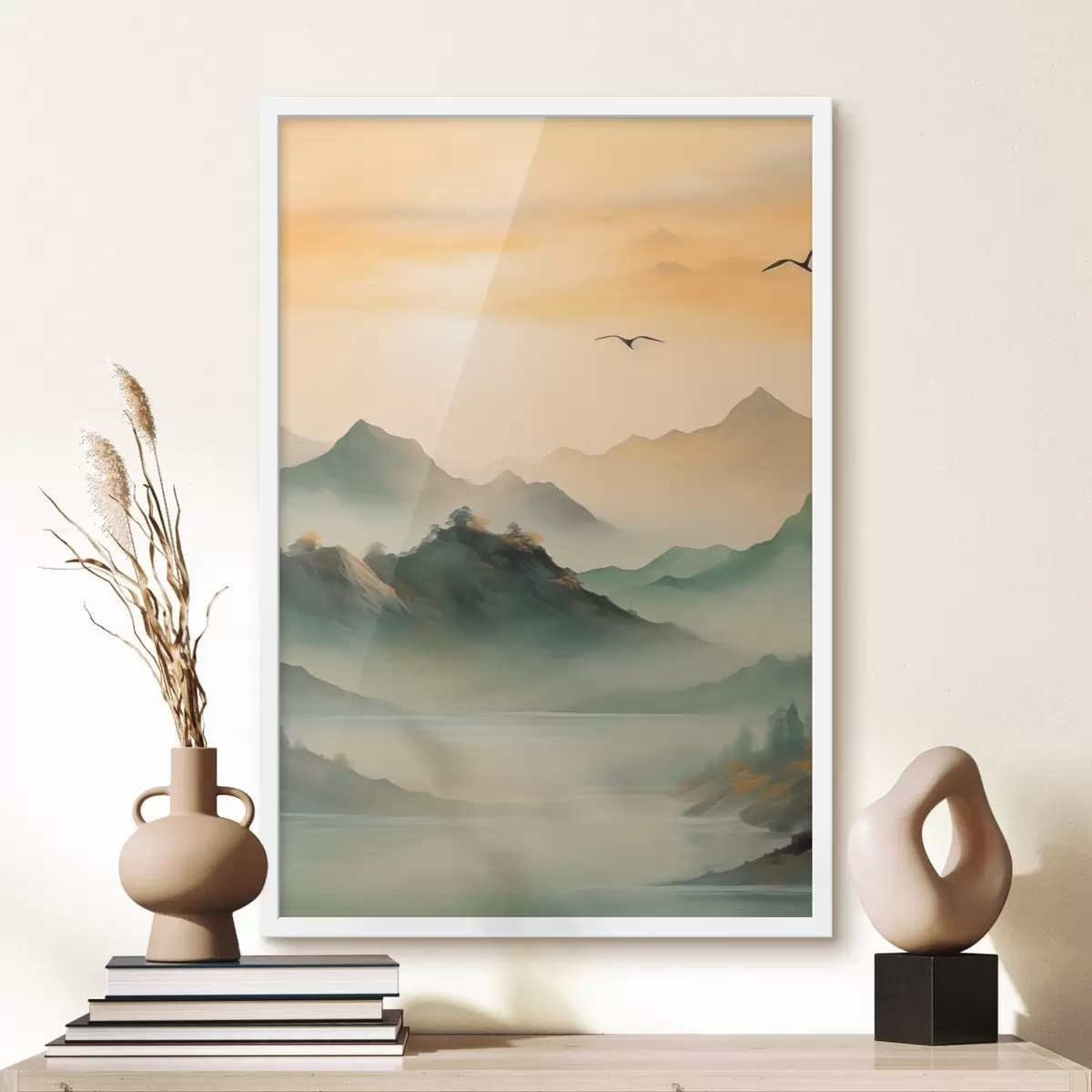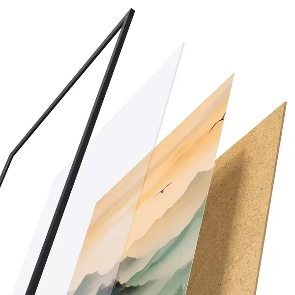 El póster consta de marco, plexiglás, imagen impresa y soporte de aglomerado. El póster puede colgarse inmediatamente en la pared gracias a los soportes de la parte posterior.