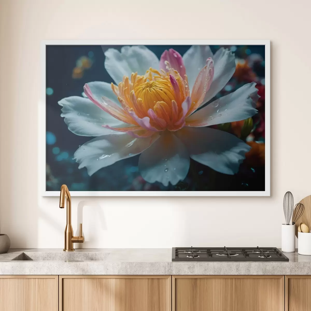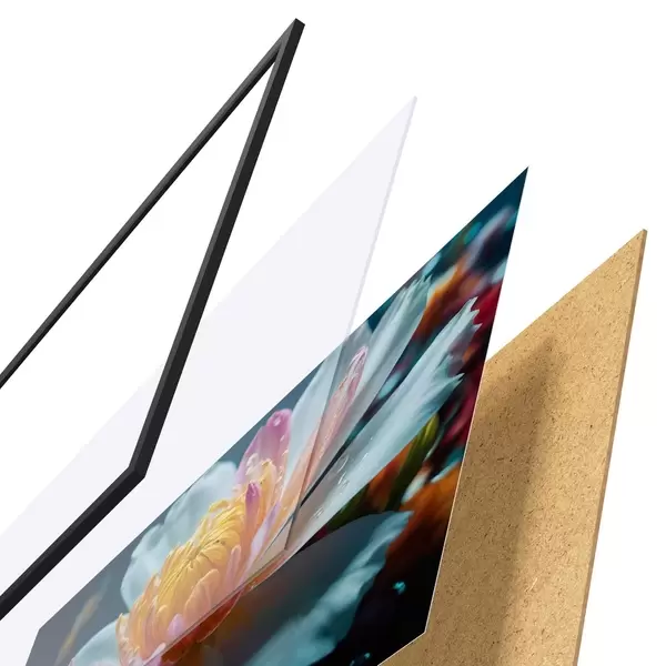 El póster consta de marco, plexiglás, imagen impresa y soporte de aglomerado. El póster puede colgarse inmediatamente en la pared gracias a los soportes de la parte posterior.
