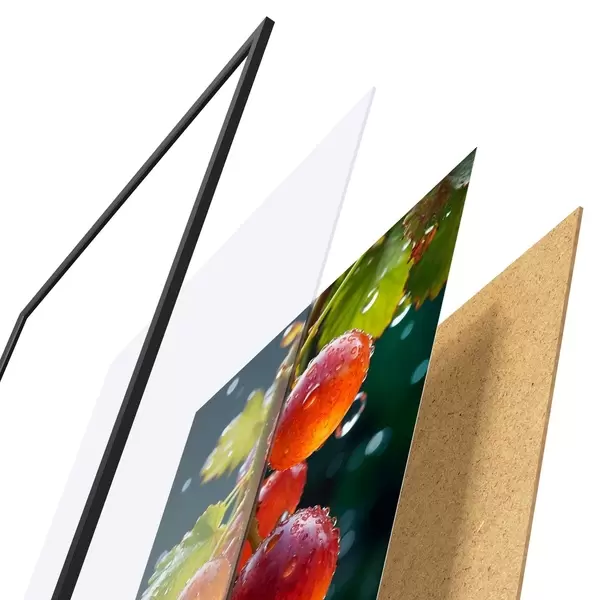 El póster consta de marco, plexiglás, imagen impresa y soporte de aglomerado. El póster puede colgarse inmediatamente en la pared gracias a los soportes de la parte posterior.