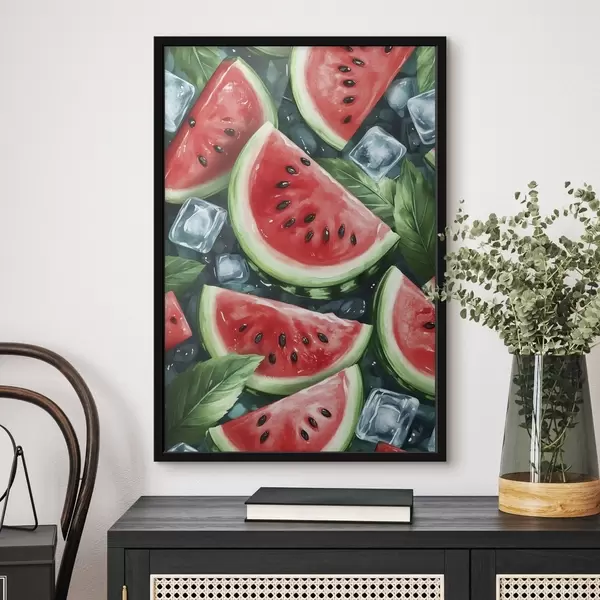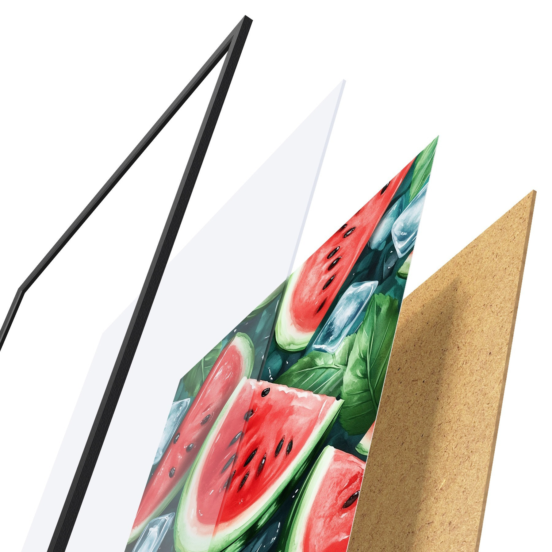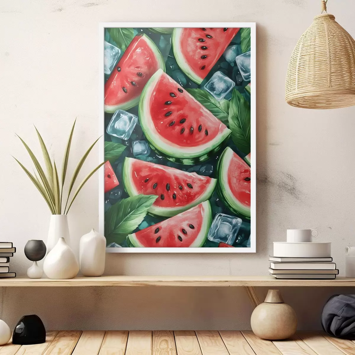 Poster Rodajas de sandía con cubitos de hielo y menta, estilo acuarela Nr f43880