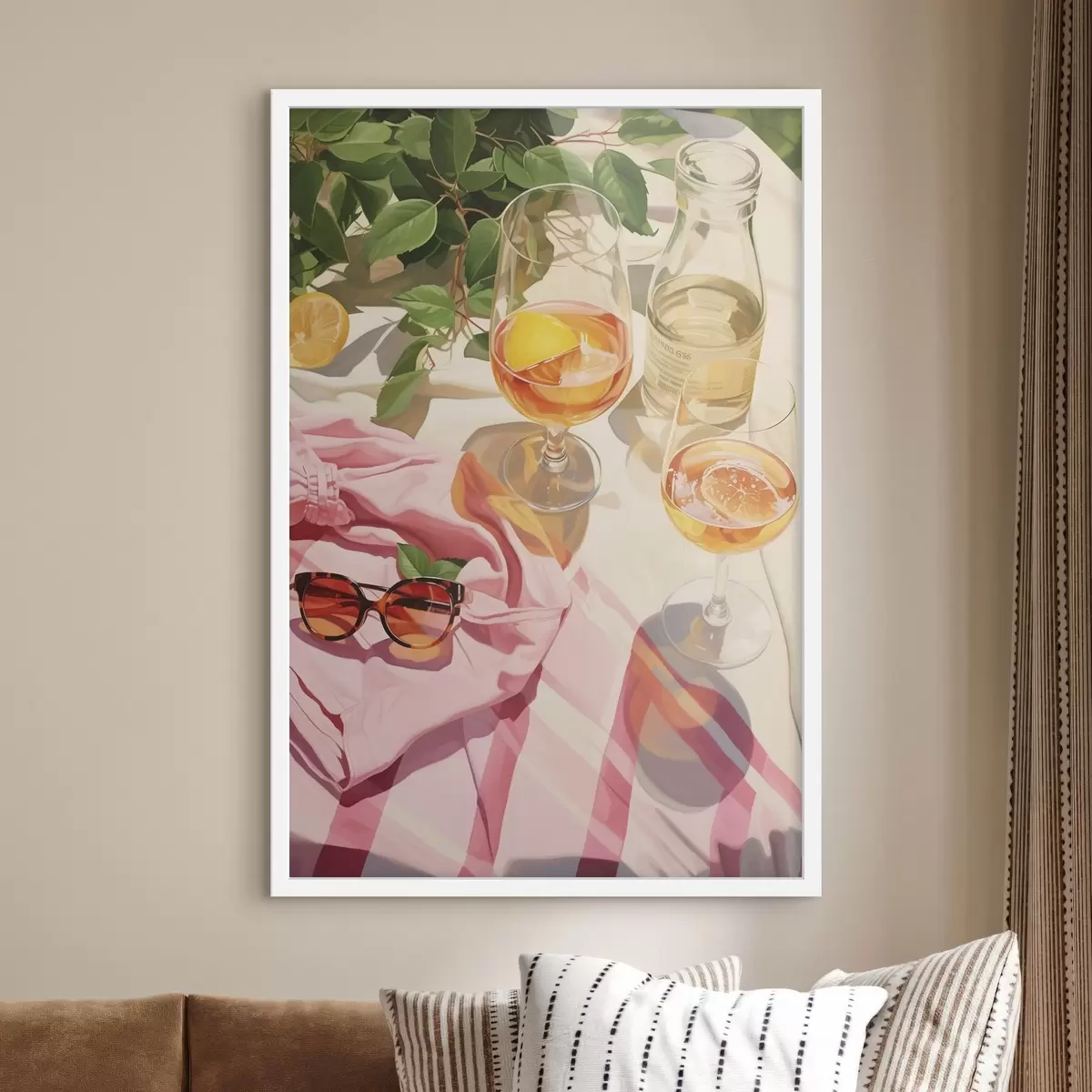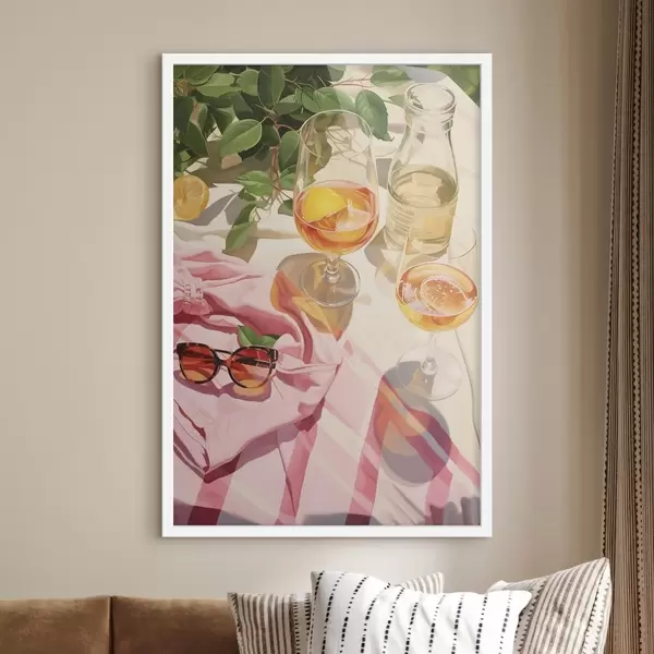 Poster Verano, copas con champán, plantas verdes, colores cálidos Nr f43885