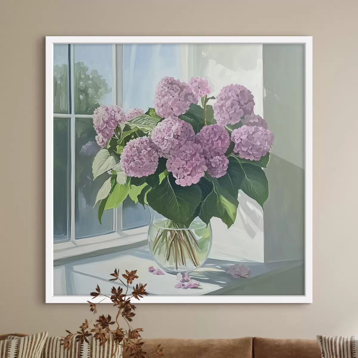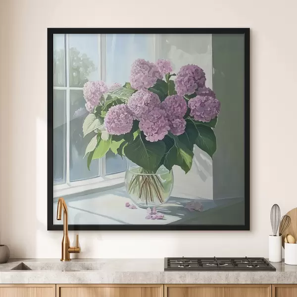 Poster Ramo de flores moradas en la ventana Nr f43906