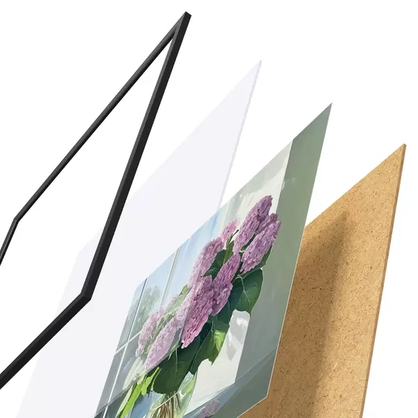 El póster consta de marco, plexiglás, imagen impresa y soporte de aglomerado. El póster puede colgarse inmediatamente en la pared gracias a los soportes de la parte posterior.