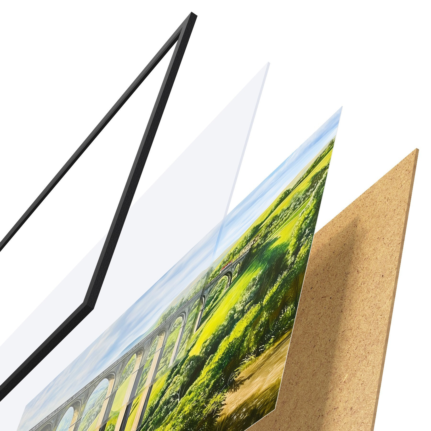 El póster consta de marco, plexiglás, imagen impresa y soporte de aglomerado. El póster puede colgarse inmediatamente en la pared gracias a los soportes de la parte posterior.