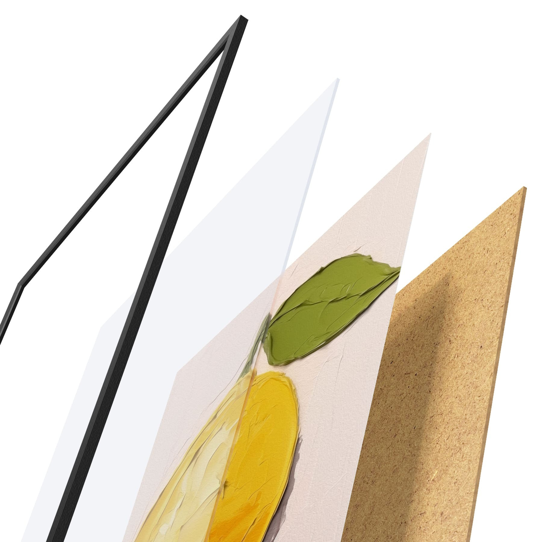 El póster consta de marco, plexiglás, imagen impresa y soporte de aglomerado. El póster puede colgarse inmediatamente en la pared gracias a los soportes de la parte posterior.