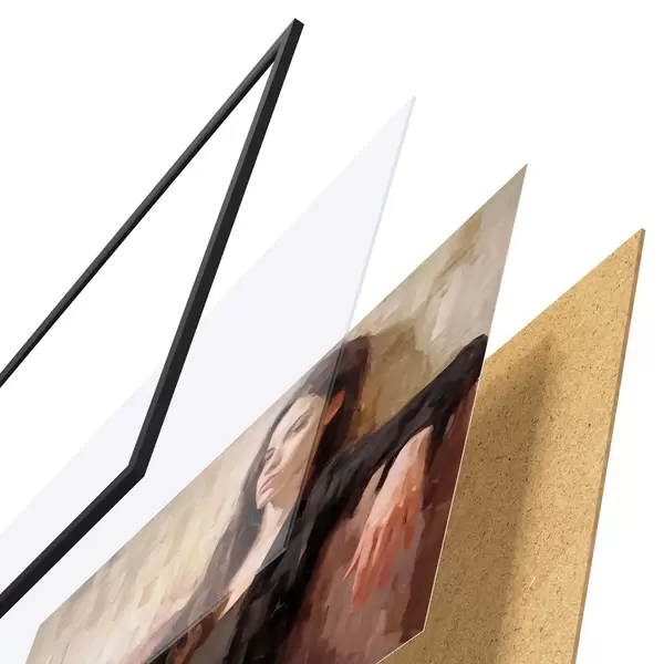 El póster consta de marco, plexiglás, imagen impresa y soporte de aglomerado. El póster puede colgarse inmediatamente en la pared gracias a los soportes de la parte posterior.