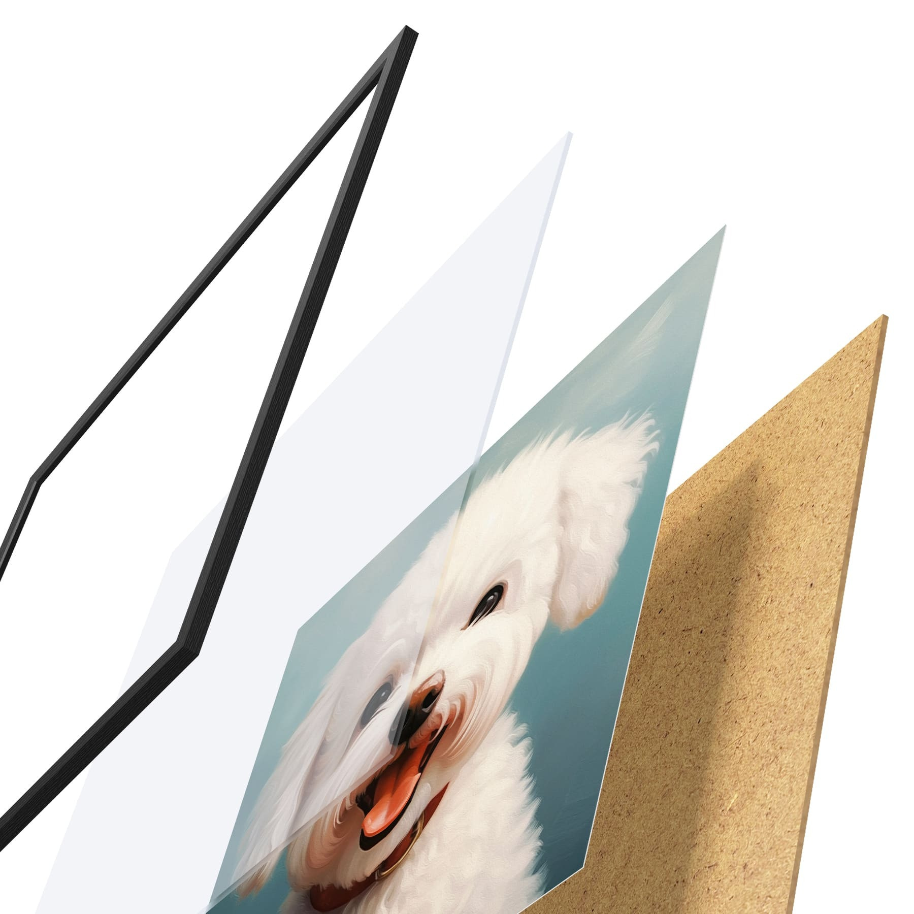 El póster consta de marco, plexiglás, imagen impresa y soporte de aglomerado. El póster puede colgarse inmediatamente en la pared gracias a los soportes de la parte posterior.