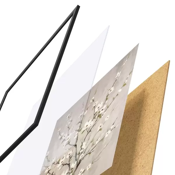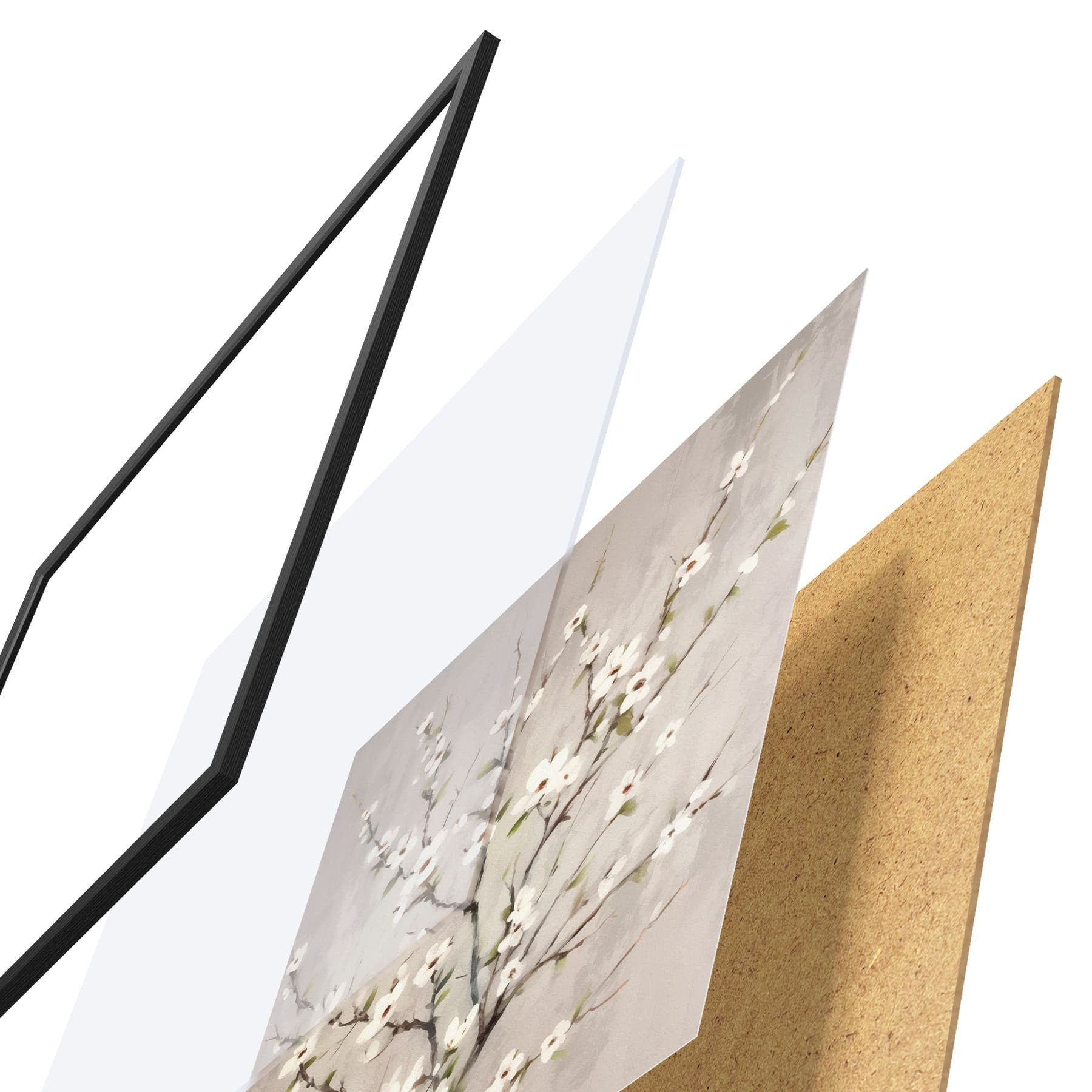 El póster consta de marco, plexiglás, imagen impresa y soporte de aglomerado. El póster puede colgarse inmediatamente en la pared gracias a los soportes de la parte posterior.