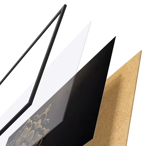 El póster consta de marco, plexiglás, imagen impresa y soporte de aglomerado. El póster puede colgarse inmediatamente en la pared gracias a los soportes de la parte posterior.