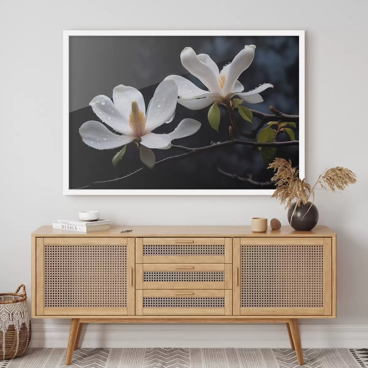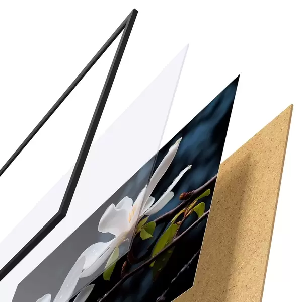 El póster consta de marco, plexiglás, imagen impresa y soporte de aglomerado. El póster puede colgarse inmediatamente en la pared gracias a los soportes de la parte posterior.