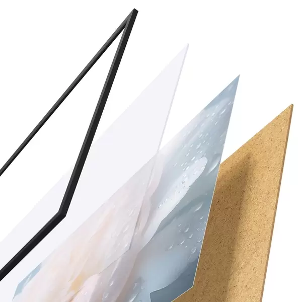 El póster consta de marco, plexiglás, imagen impresa y soporte de aglomerado. El póster puede colgarse inmediatamente en la pared gracias a los soportes de la parte posterior.