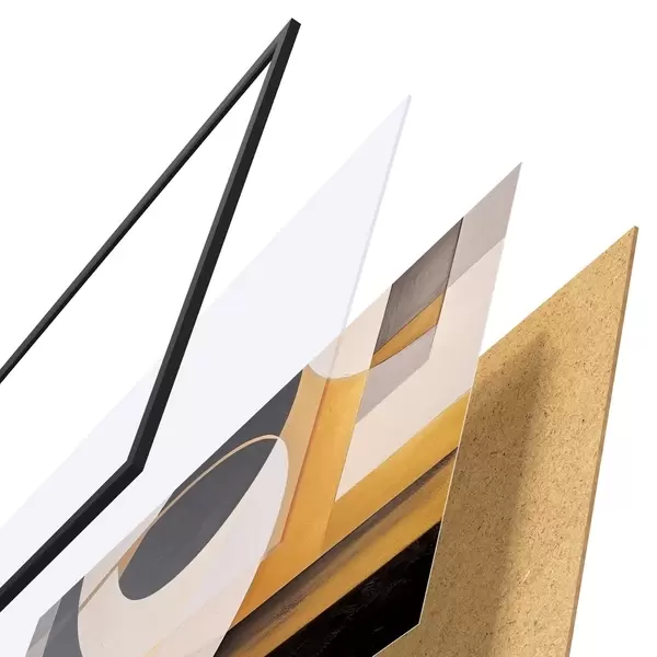 El póster consta de marco, plexiglás, imagen impresa y soporte de aglomerado. El póster puede colgarse inmediatamente en la pared gracias a los soportes de la parte posterior.