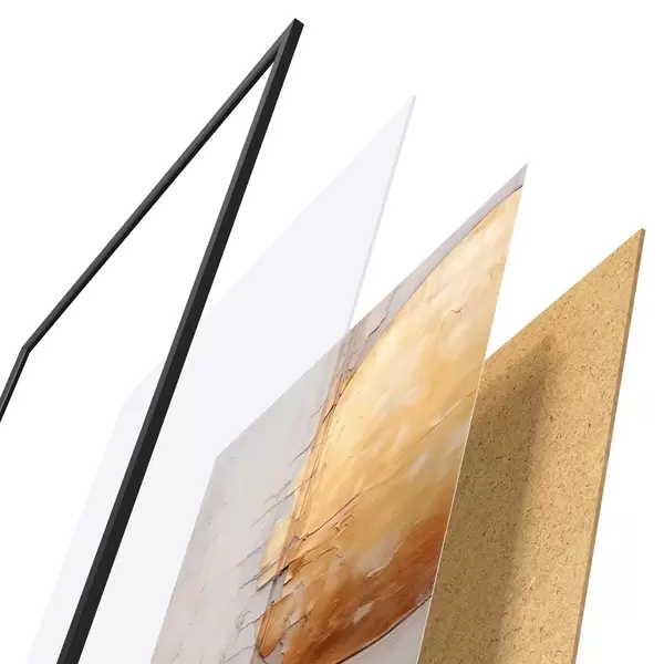 El póster consta de marco, plexiglás, imagen impresa y soporte de aglomerado. El póster puede colgarse inmediatamente en la pared gracias a los soportes de la parte posterior.