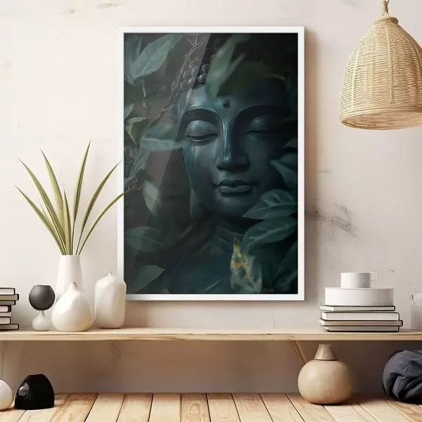Poster Buda verde en hojas tropicales, realismo Nr f44005