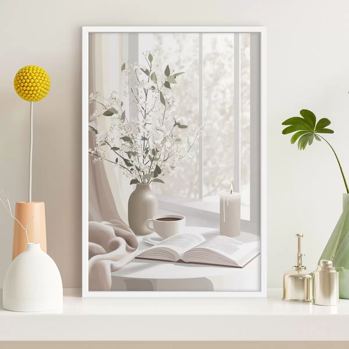 Poster Mañana de primavera con café y flores, suaves colores pastel Nr f44015